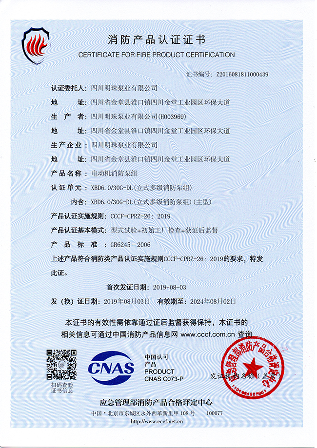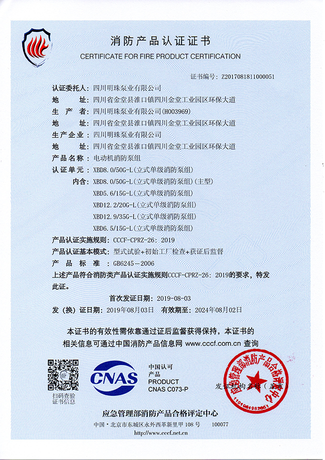 XBD-DL消防产品认证证书