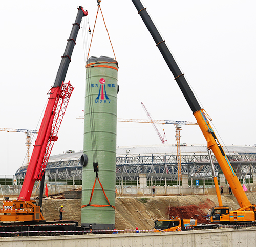 玻璃钢一体化预制泵站的容积通过计算有效容积,底部泵坑的流体动力学水力模型,新型筒体材质的应用,内部管配件包括粉碎性格栅的集成化安装等来实现。可以将预制泵站的体积控制在传统混凝土泵站的1/3甚至更小。由此大大缩小了预制泵站的尺寸,节约了土建成本,方便运输和安装。